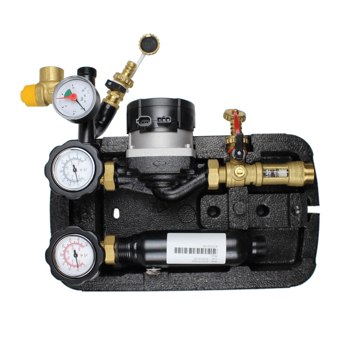 Il design prevede anche un collegamento flessibile per il vaso di espansione, mentre la valvola di sicurezza solare integrata e il manometro garantiscono un funzionamento sicuro e continuo. L'apertura laterale favorisce inoltre un efficace raffreddamento della pompa, particolarmente utile durante il funzionamento continuo.