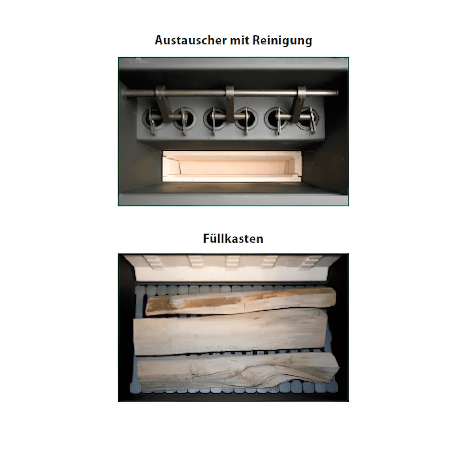 • Ten/Ta/To horní plnění spalovací komory umožňuje rychlé a pohodlné doplňování paliva přes výklopná horní plnicí dvířka.