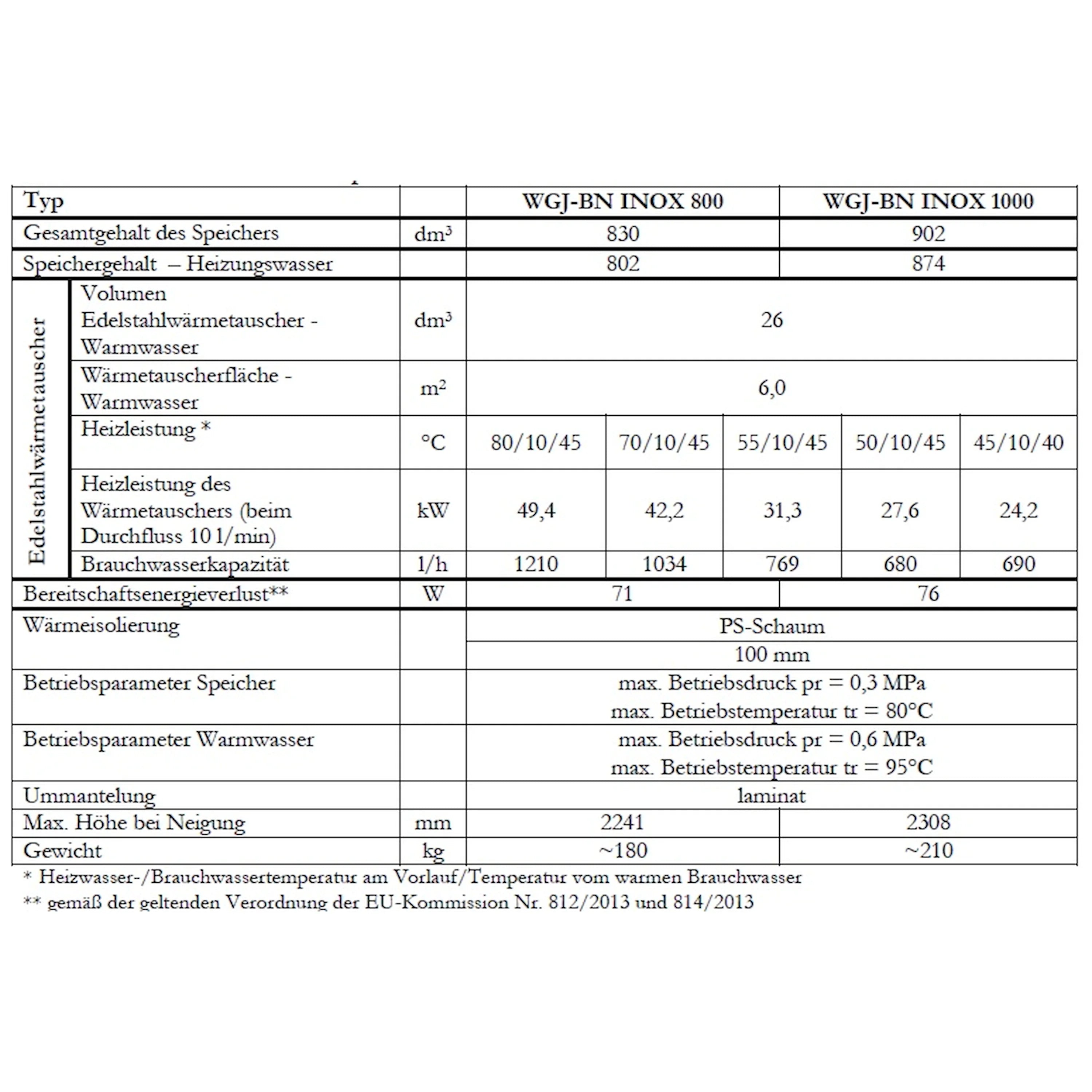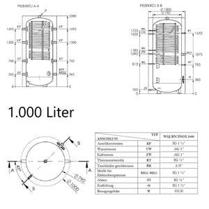 Το WGJ-BN INOX συνδυάζει μια δεξαμενή αδρανείας για τη θέρμανση νερού με έναν ενσωματωμένο θερμοσίφωνα ζεστού νερού χρήσης. Στο εσωτερικό, ένας κυματοειδής σωλήνας από ανοξείδωτο χάλυβα λειτουργεί ως εναλλάκτης θερμότητας, παρέχοντας μια μεγάλη επιφάνεια επαφής για γρήγορη και αποτελεσματική ανταλλαγή θερμότητας και επιτρέποντας την στιγμιαία θέρμανση νερού. Η μέγιστη πίεση λειτουργίας της δεξαμενής είναι 0,3 MPa.