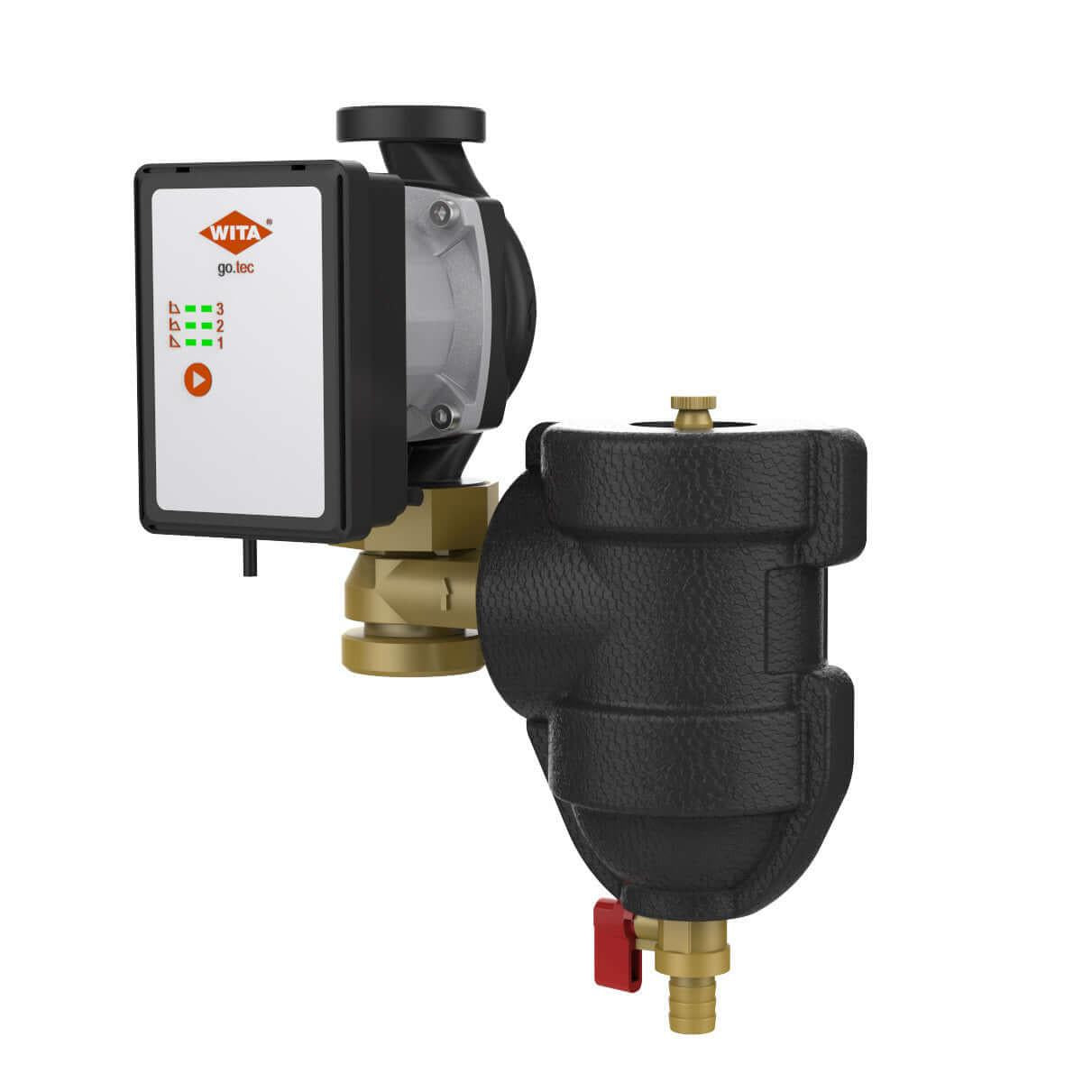 The WITA high-efficiency pump set combines advanced technology with practical solutions to operate your system efficiently and reliably. go.tec The high-efficiency pump ensures a powerful, energy-saving pumping solution, while the WITA-Trap MS L50 guarantees optimal protection against contamination and damage. Together, they form the perfect duo for a modern, low-maintenance heating, cooling, or solar system.