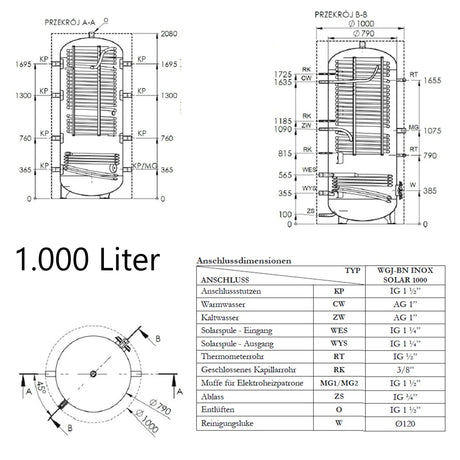 Couches - mémoire tampon avec 2 échangeurs de chaleur