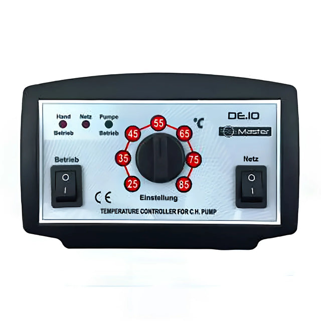 Le régulateur de pompe Master DE.10 offre une solution de régulation intelligente, fiable et économe en énergie pour votre système de chauffage. Doté de fonctionnalités pratiques telles que la protection de la pompe, la protection antigel et la possibilité de l'utiliser comme thermostat, cet appareil allie efficacité et longévité maximale pour votre pompe de circulation.Grâce au câblage installé en usine, le système de contrôle est également facile à installer.