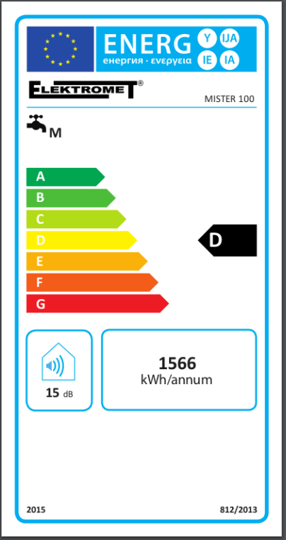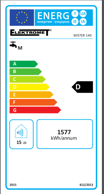 | Vrijeme zagrijavanja za Δt = 50°C za grijač od 1500 W | h | 0,78 | 1.1 | 1,5 | 1,9 | 2.3 | 3 | 3.8 | 4,5 | 5.3 |