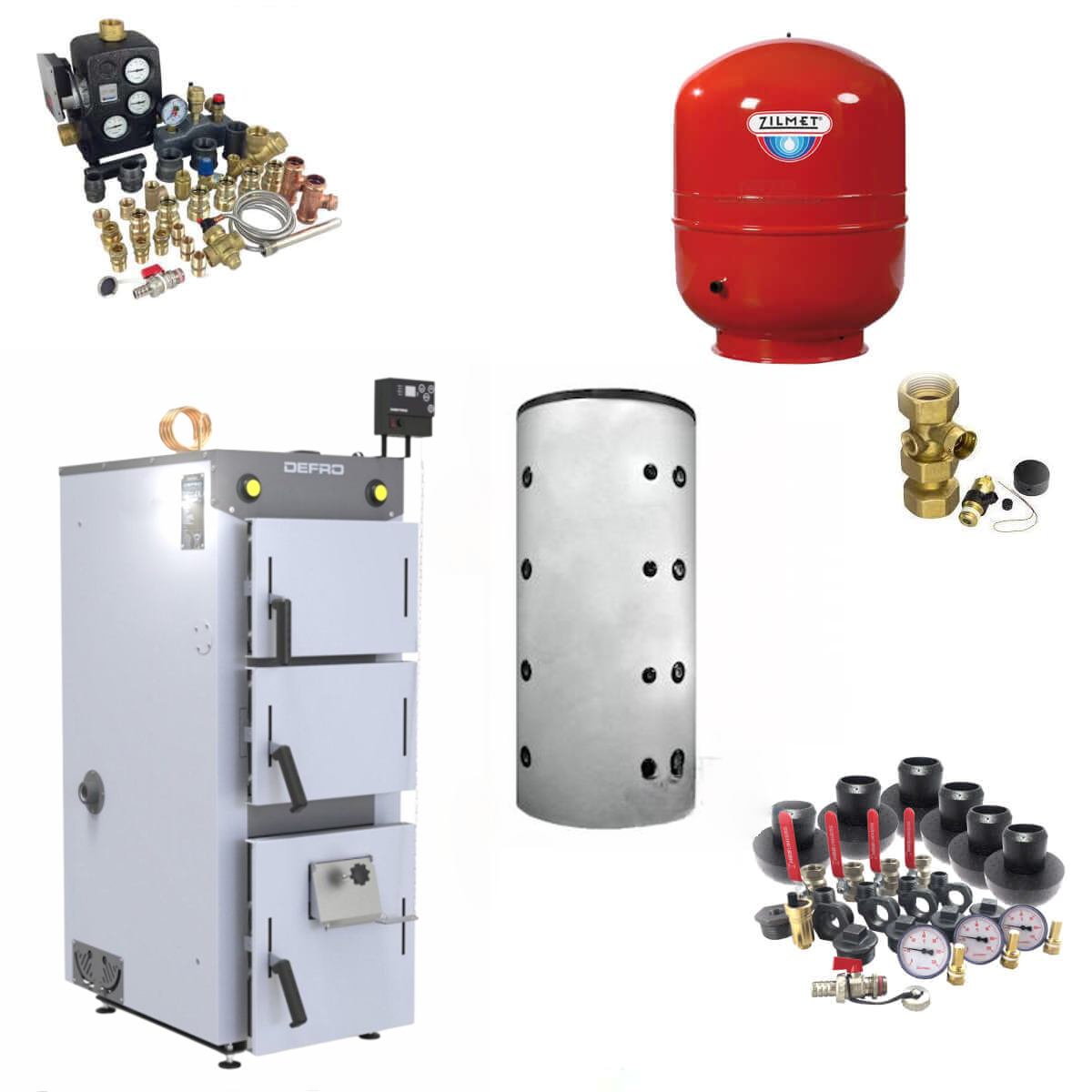 A Defro Firewood csatlakozócsomag tartalmazza az összes fontos alkatrészt a karburátor zökkenőmentes és hatékony csatlakoztatásához.-Faszén kazáns. A biztonságos működés érdekében kiváló minőségű csatlakozások, mint például a visszatérő hőmérséklet-növelők, a kazán biztonsági csoportjai, valamint a kazántöltő és -ürítő szelepek vannak kombinálva.
