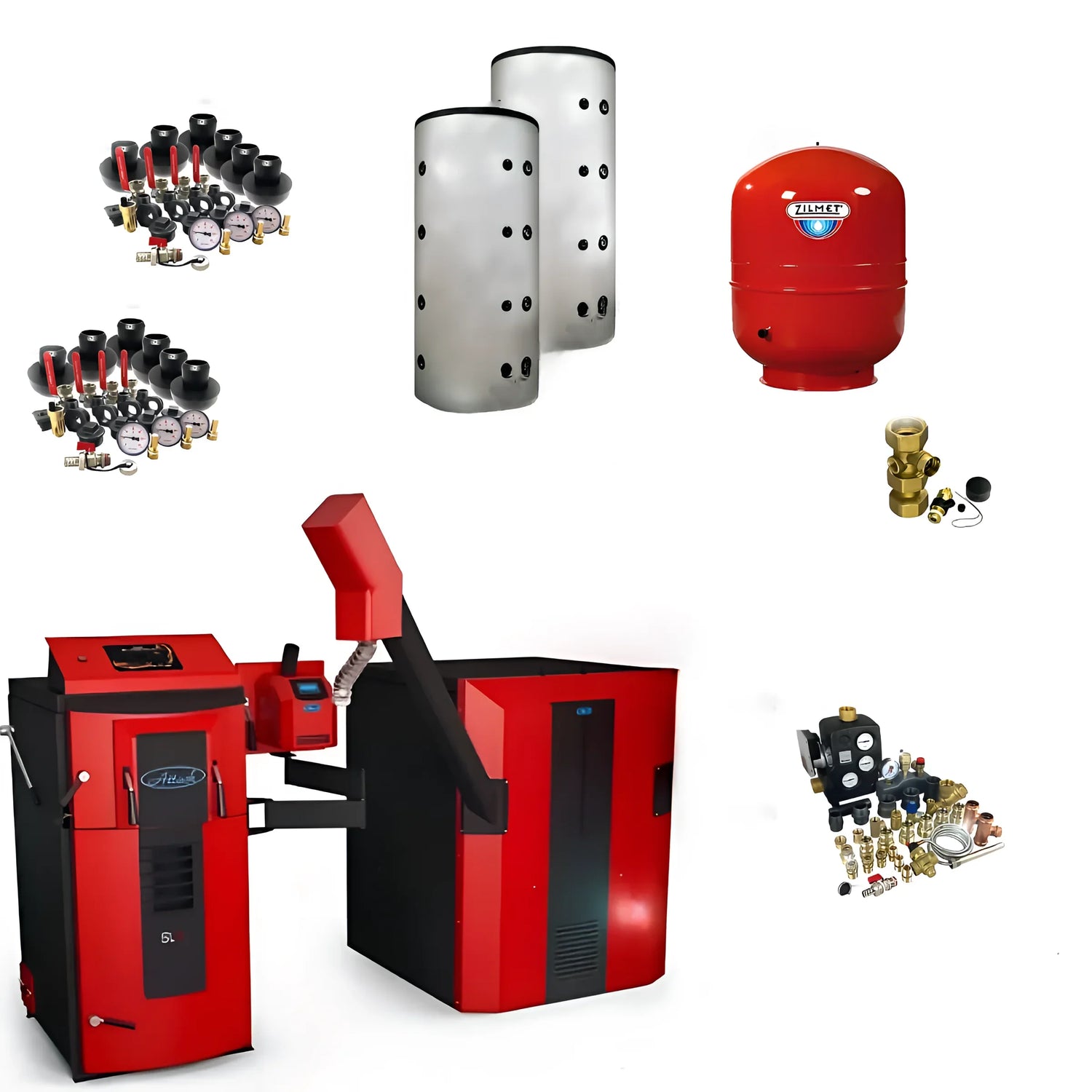 Az átfogó csatlakozócsomag minden szükséges komponenst tartalmaz a kazán és a puffertartály zökkenőmentes csatlakoztatásához. Az alapvető csövek és csatlakozók mellett speciális szerelvényeket is tartalmaz, amelyek leegyszerűsítik a csatlakozást a meglévő rendszerekhez.