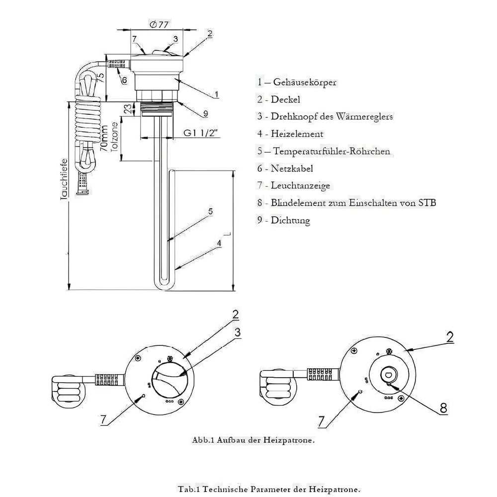 Element grzejny ma 1 1/2" Grzałka posiada gwint zewnętrzny (AG) i pasuje do standardowych zasobników ciepłej wody użytkowej i wody pitnej. Dzięki kompaktowej długości montażowej 300 mm i długości 70 mm (bez grzania) grzałka jest szybka i łatwa w montażu. Dołączony 1,5-metrowy kabel przyłączeniowy z wtyczką Schuko zapewnia proste i bezpośrednie zasilanie.