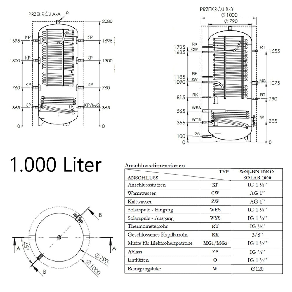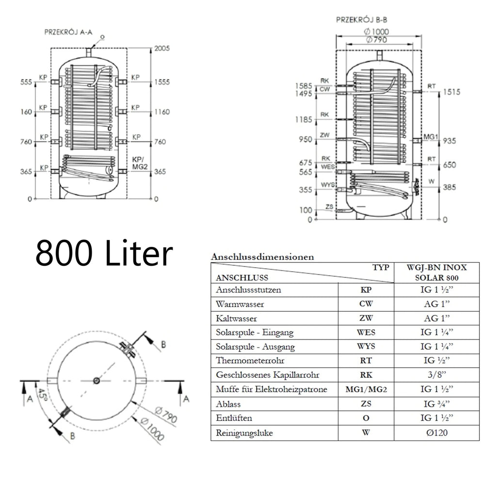 WGJ-BN INOX SOLAR to kombinowany zasobnik buforowy do podgrzewania wody użytkowej i ciepłej wody użytkowej ze zintegrowaną wężownicą grzejną ze stali nierdzewnej pełniącą funkcję wymiennika ciepła. Został zaprojektowany do integracji z systemami centralnego ogrzewania z kotłami, pompami ciepła lub do wykorzystania energii słonecznej. Umożliwia zarówno magazynowanie energii cieplnej, jak i ciągłe podgrzewanie wody pitnej.
