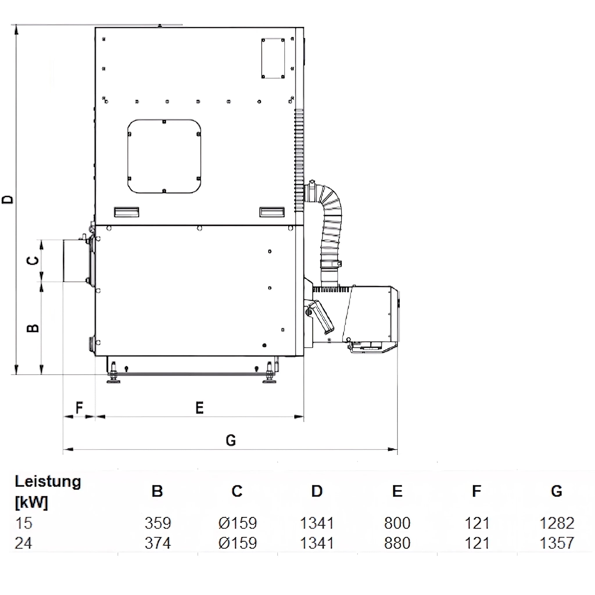 Le potenze nominali disponibili includono 15 kW e 24 kW; Nel complesso, la serie copre un'ampia gamma di potenze da ca. Da 11 a 30 kW. Il dispositivo soddisfa la classe di emissione 5 nonché i requisiti dello standard Ecodesign ed è classificato nella classe di efficienza energetica A+.