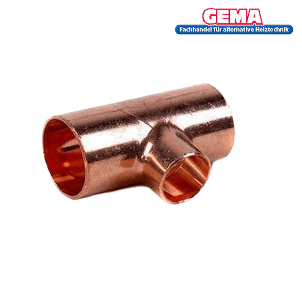 Raccordo a T con due attacchi e un attacco ridotto per tubi in rame.