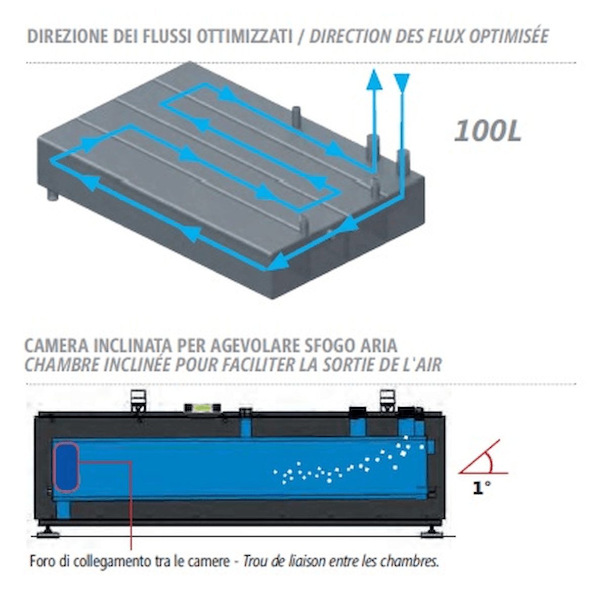 BOMBER 100B este noul și inovatorul rezervor tampon dreptunghiular, ultraplat, cu o capacitate de 100 de litri, care garantează un conținut minim de apă în sistem pentru funcționarea corectă a pompei de căldură.